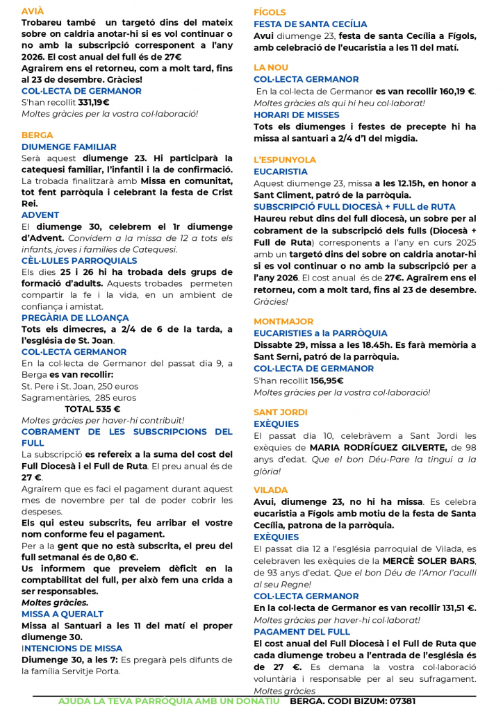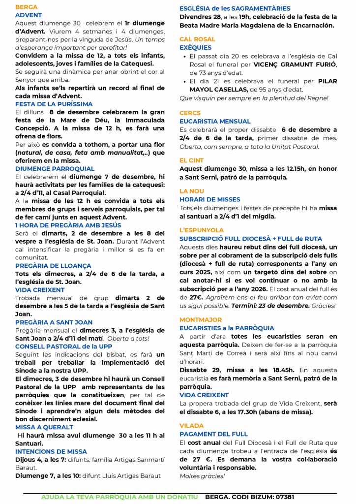 Aquest diumenge la parròquia de Berga ha iniciat el curs 2025-2026 amb la primera de les diades parroquials que es repetiran mensualment.