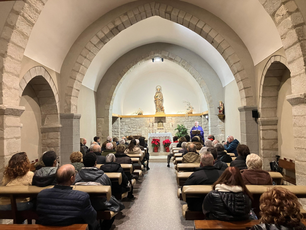 La celebració presidida per mossèn Josep Maria Vila, seguint el calendari litúrgic del quart diumenge d’Advent, va gaudir de la presència del Grup de Cantaires de la Valldan i un bon nombre de fidels de la comunitat de la Valldan i altres vinguts de Berga, habituals a la missa mensual.