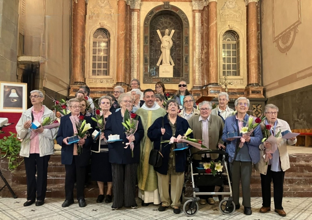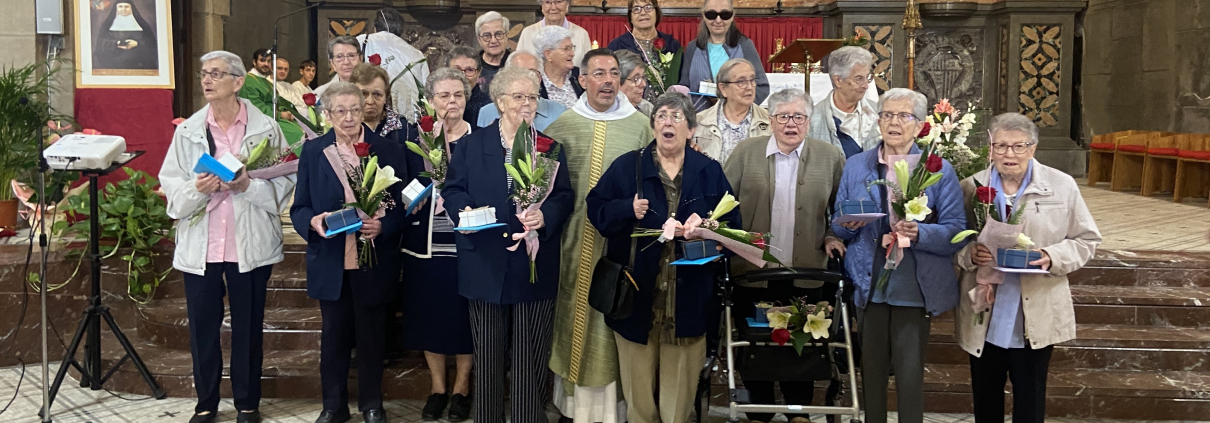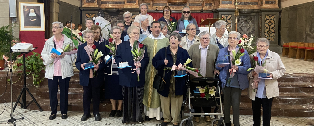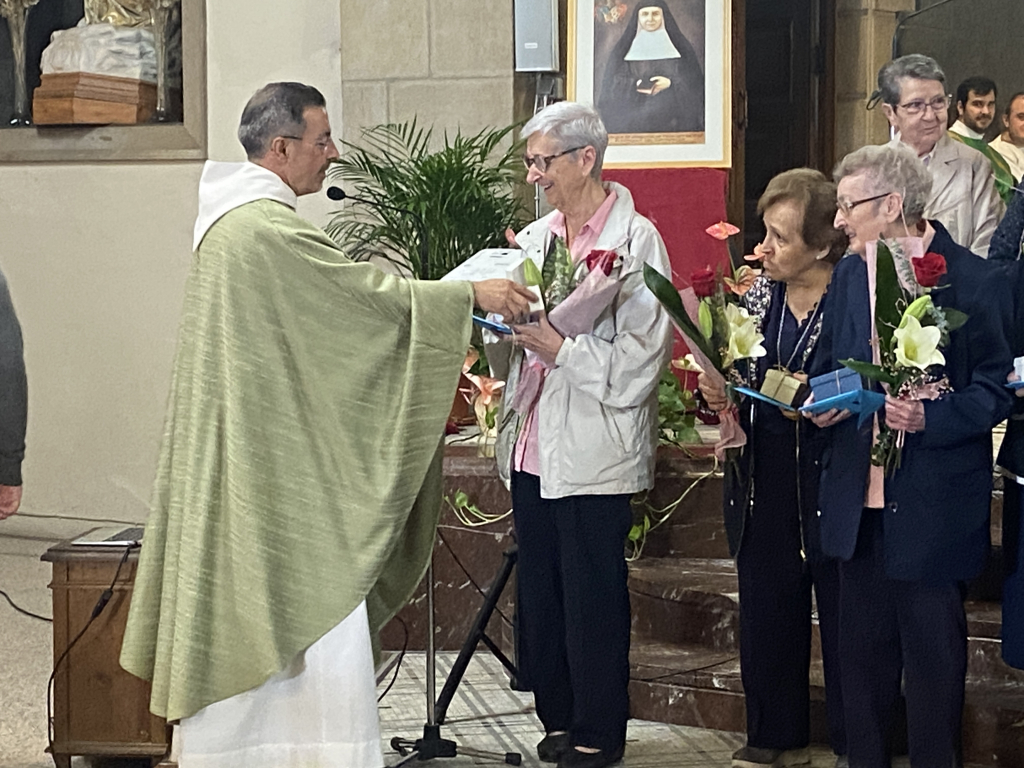 La comunitat parroquial ha fet entrega a les germanes d’un petit ram de flors, una imatge de la Mare de Déu de Queralt i un disc amb la musica queraltina, que la Mare de Déu de Queralt les acompanyi en aquesta nova etapa.