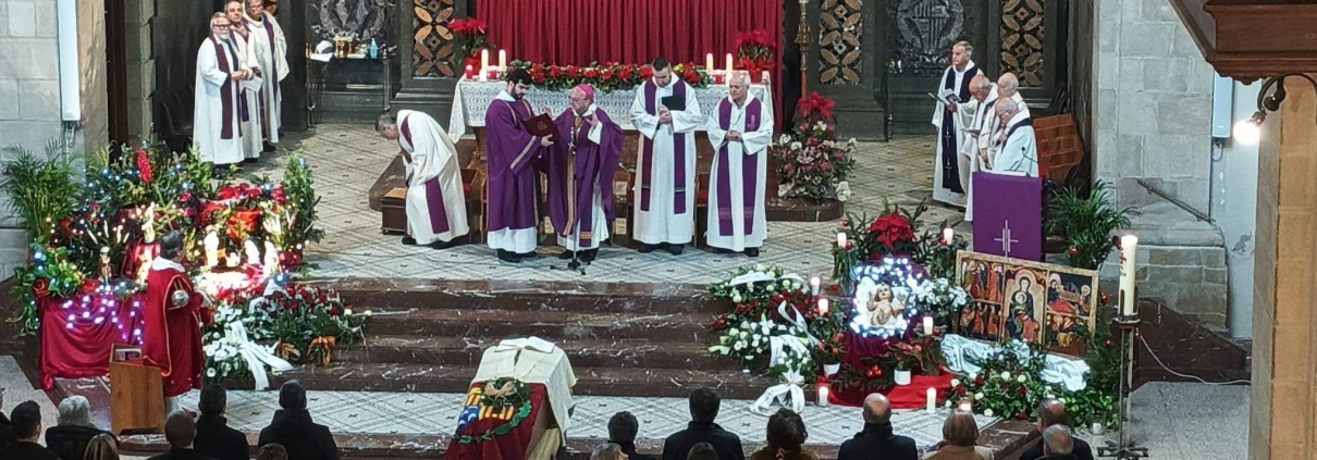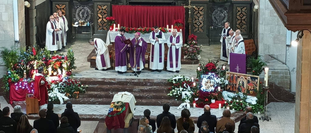 El Bisbe Francesc Conesa ha presidit el funeral acompanyat del Vicari General mossèn Marc Majà, nombrosos mossens de tot el bisbat i el diaca Rui Jorge, amb l’acompanyament dels cants de l’Orfeó Berguedà.