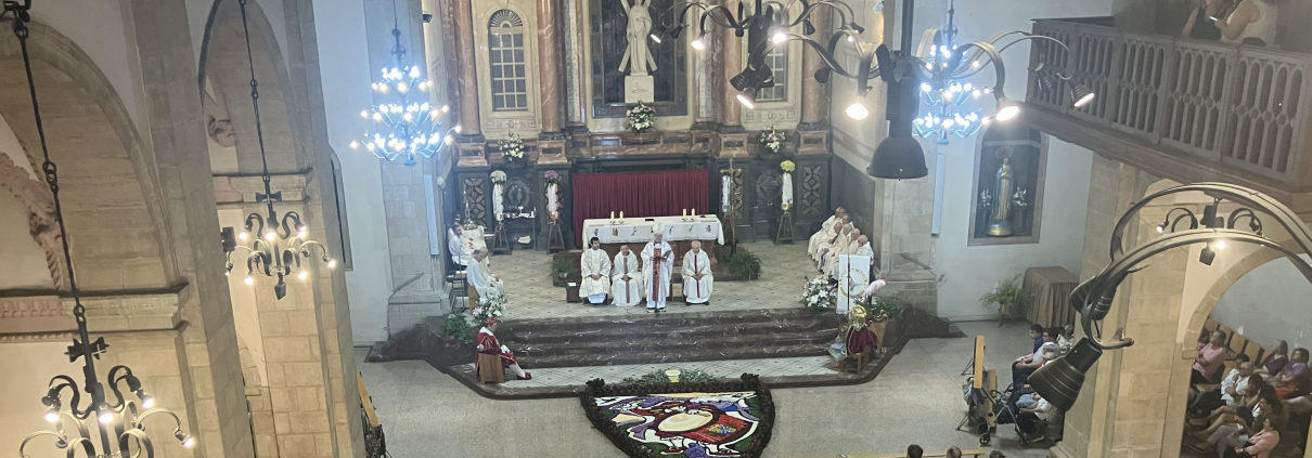 Presidida pel Bisbe de Solsona Mons. Francesc Conesa acompanyat dels preveres de la UPP de Berga, dels de les Unitats properes i altres mossens que al llarg dels anys han format part de la nostra parròquia, el diaca i els acòlits. La part civil encapçalada per una representació dels regidors de l’Ajuntament, les quatre parelles d’Administradors, els Àngels de la Patum i el Porrer de la ciutat. L’Orfeó Berguedà acompanyà i donà solemnitat amb els seus cants.