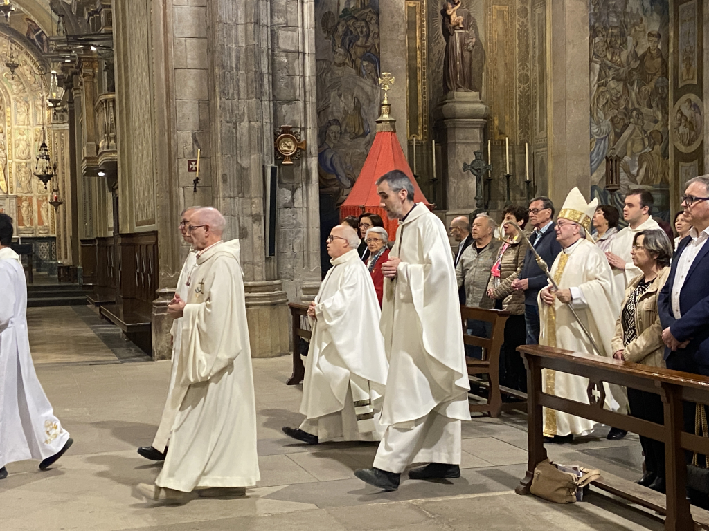 S’ha iniciat amb l’entrada en processó des de la Sala dels Canonges, encapçalada per la Creu amb tots els que anaven a ser instituïts, el diaca, els preveres i tancant-la el Bisbe Francesc.