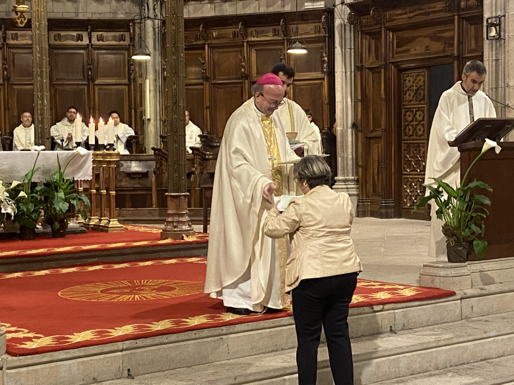 En acabar la celebració s’ha efectuat una fotografia de conjunt i una amb les 10 persones de la nostra parròquia que han rebut el nomenament, acabant amb uns moments de conversa al Claustre de la Catedral, amb uns talls de coca i xocolata.