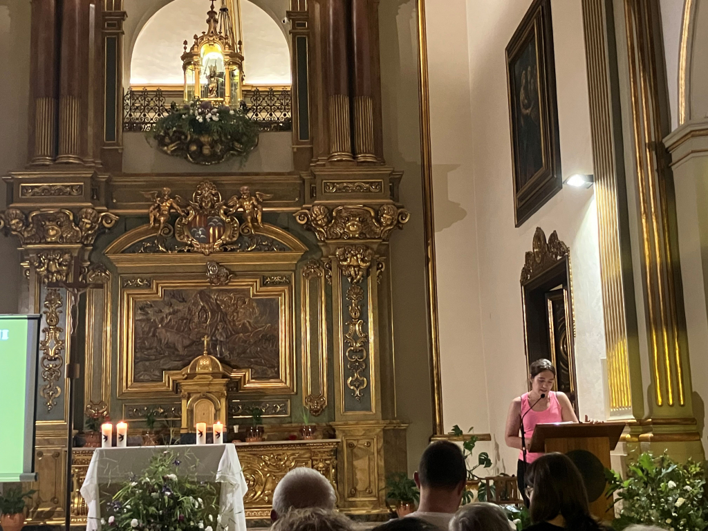 La d’enguany ha estat molt lligada al pelegrinatge del jubileu dels joves a Roma, amb el testimoni de diferents joves de casa nostra que hi participaren, fent un paral·lelisme entre 4 Sants, dos d’ells canonitzats en el dia d’avui pel Papa Lleó, i quatre virtuts: Santa Gemma Galgani amb el dolor, Sant Pier Giorgio Frassati amb la comunitat, Santa Maria Goretti amb el perdó, Sant Carlo Acutis amb l’Eucaristia; i acabant amb Maria que reuneix totes les virtuts.