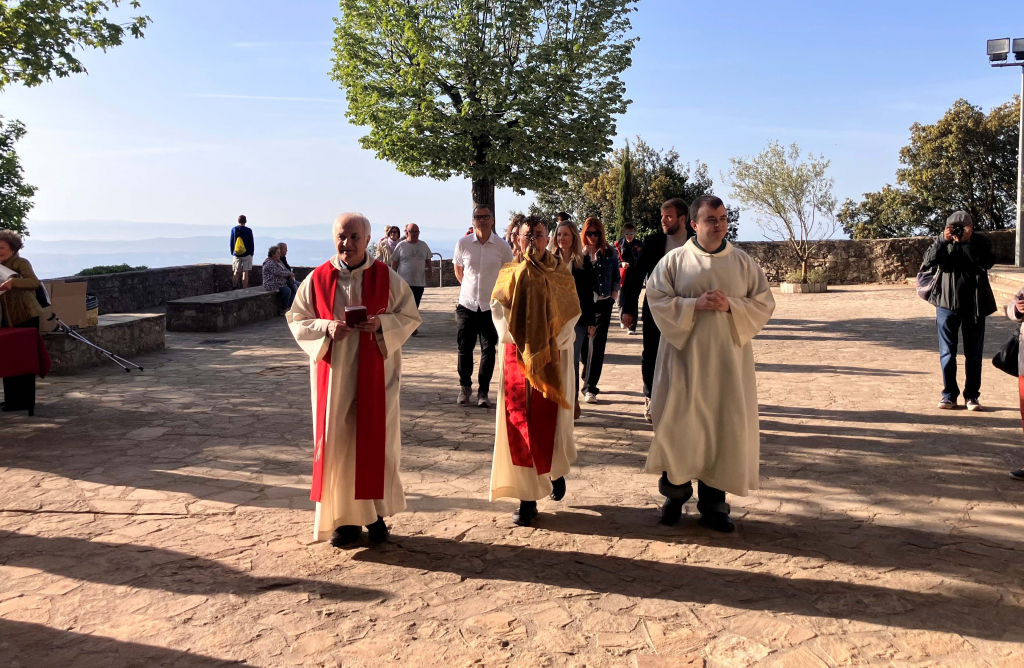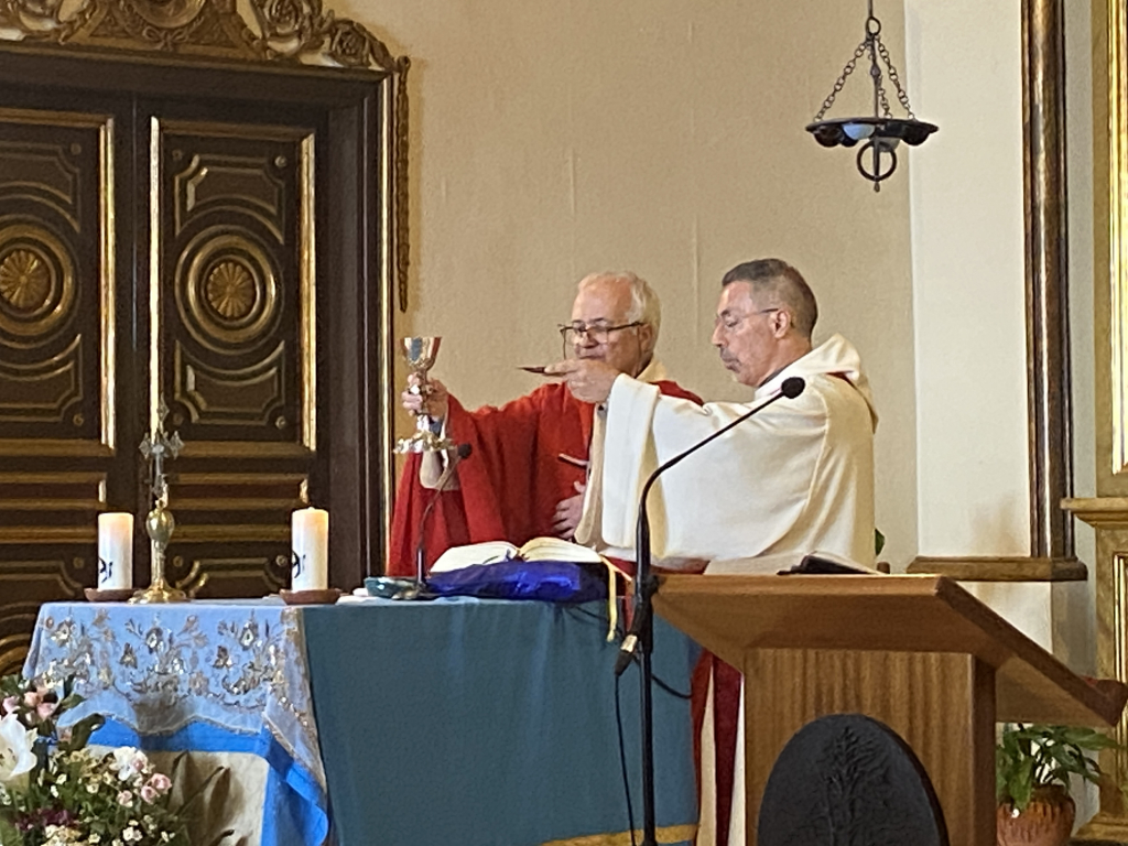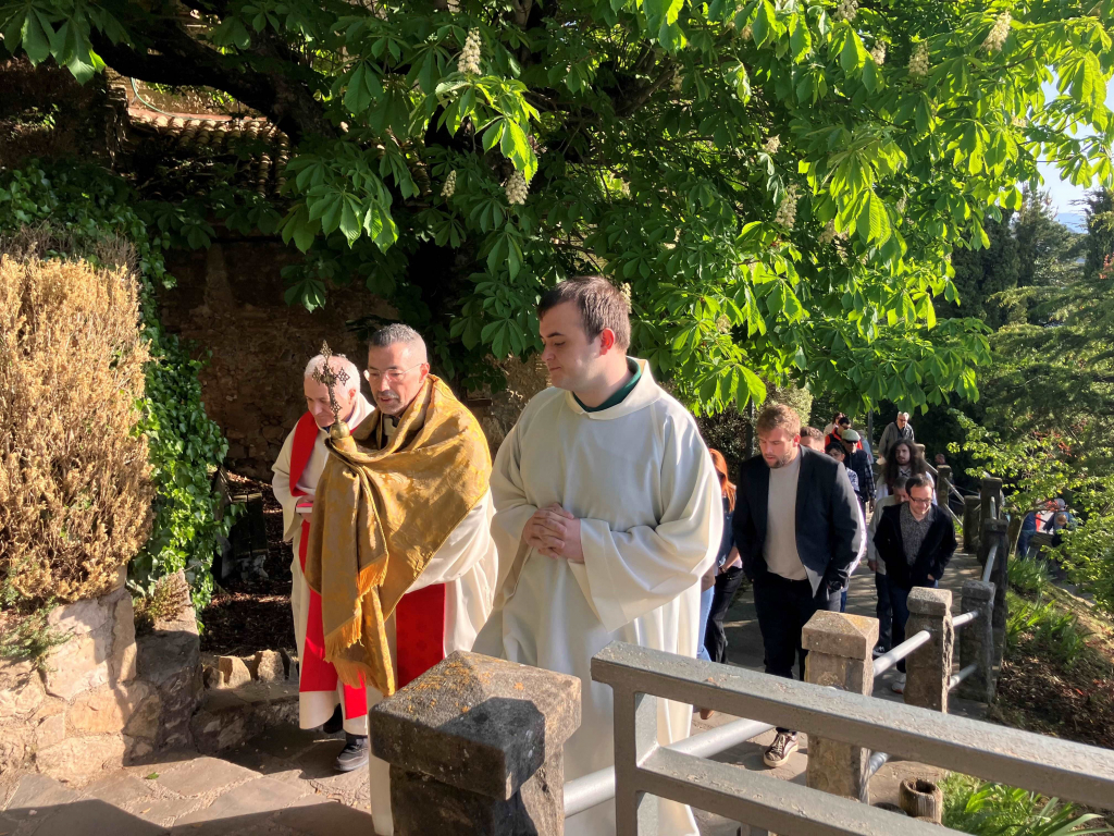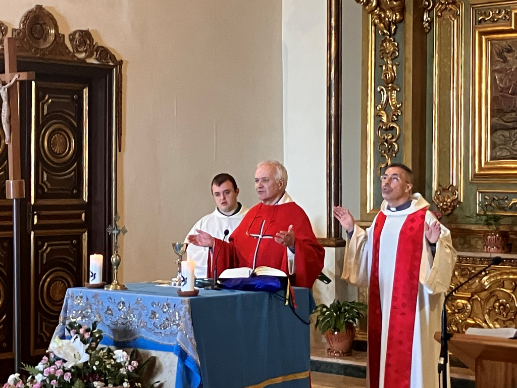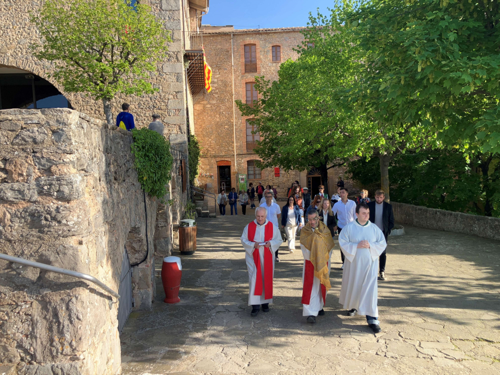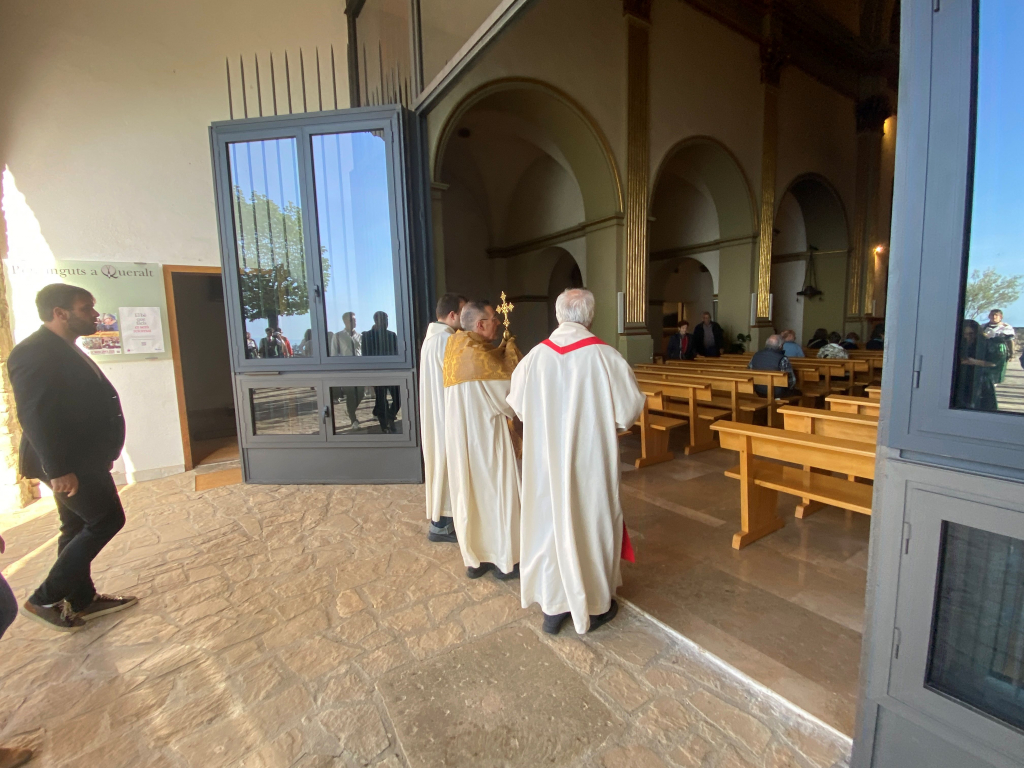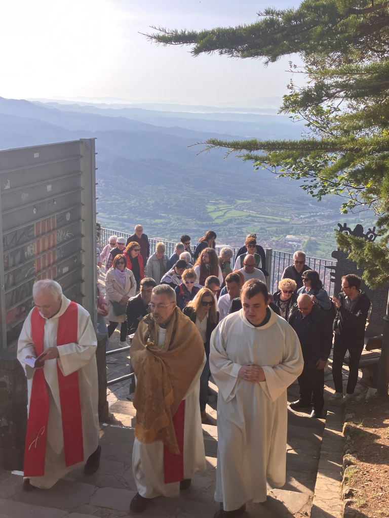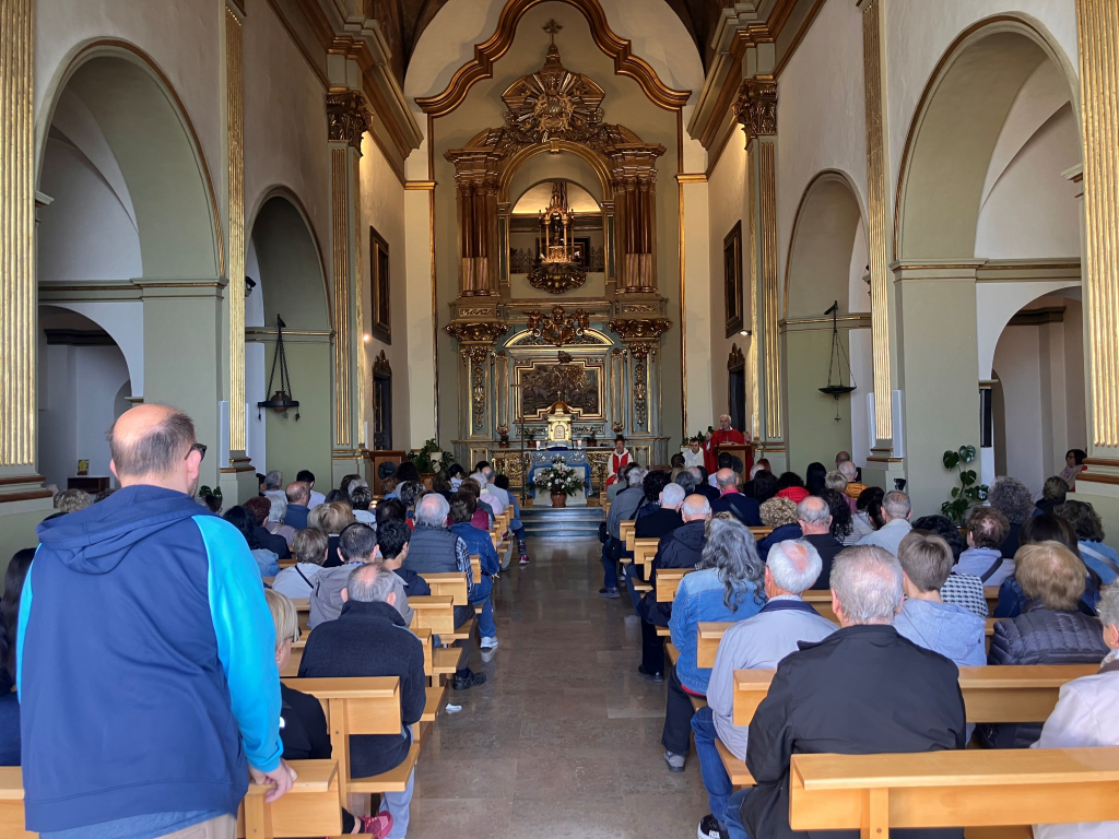 A ¾ de 9 del matí sortia la processó des de les Tres Creus pujant fins al Santuari on tot seguit es celebrà una concorreguda missa presidida per mossèn Josep M Vila acompanyat de mossèn Josep M Vilaseca.